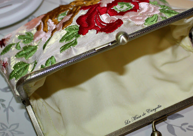 Bolso de mano hecho íntegramente a mano con cierre metálico, medidas 15 x 20. Tela con bordados y de origen italiana. Boquilla en bronce, para amantes de las joyas exclusivas, todo un lujo en cosidos y acabados perfectos. Lleva a juego otro monedero más pequeño pero se vende individual. Si quieres hacerlo tuyo solo tienes que hacer el pedido aquí mismo o hacer la reserva por privado. canyellabulevar@hotmail.com