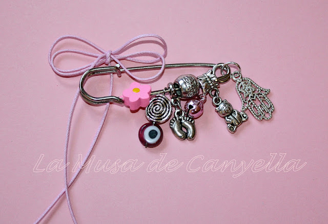 Tantas son las peticiones de este amuleto en mis creaciones que no he dudado un momento en hacer algo atractivo, dulce y coqueto para colgar en el carrito del bebé o en su cunita...