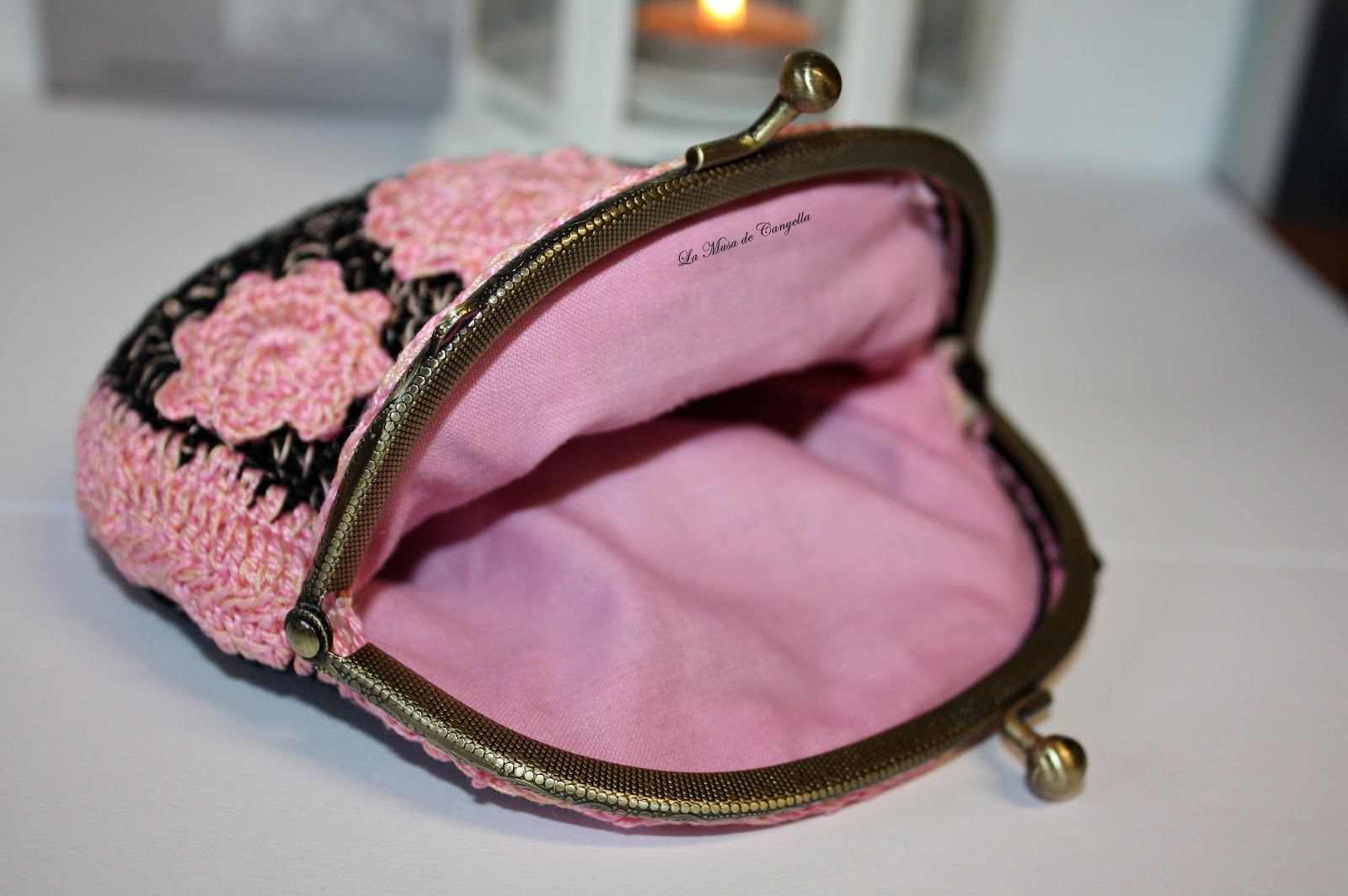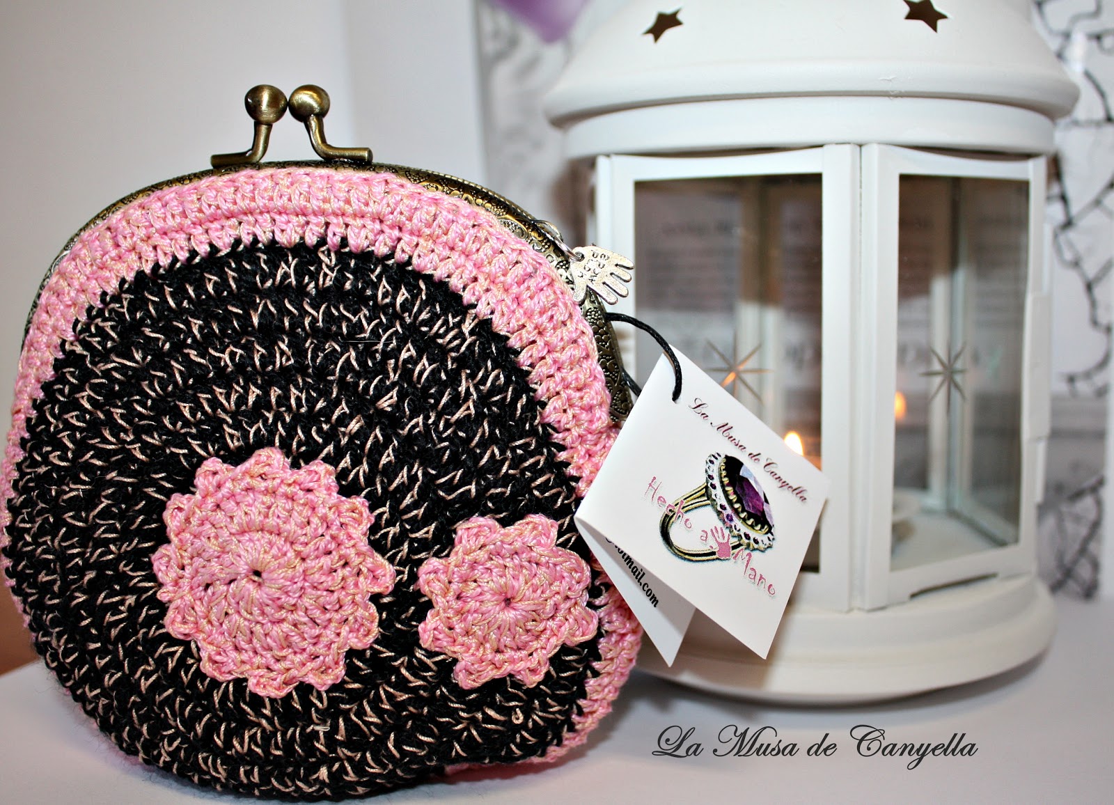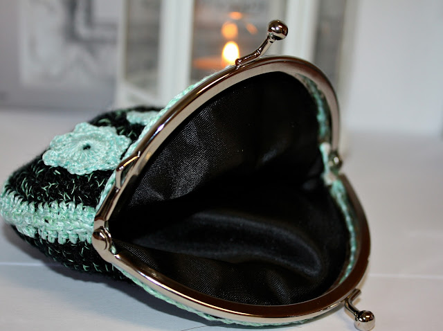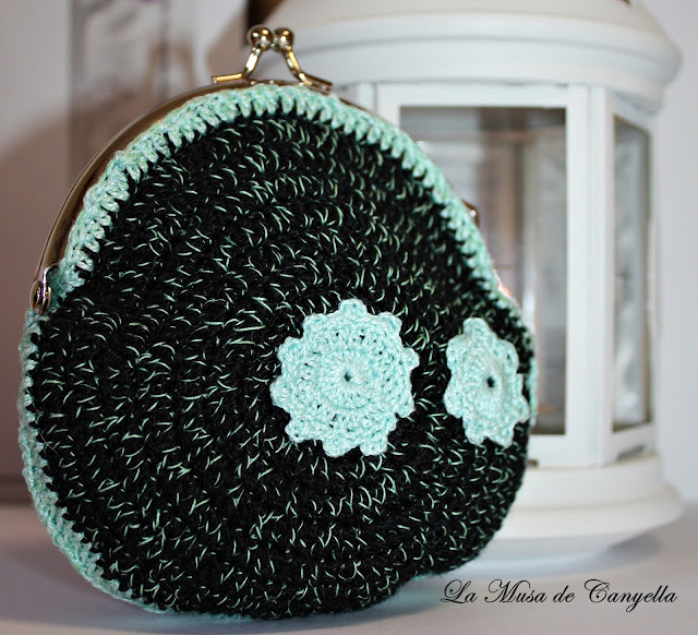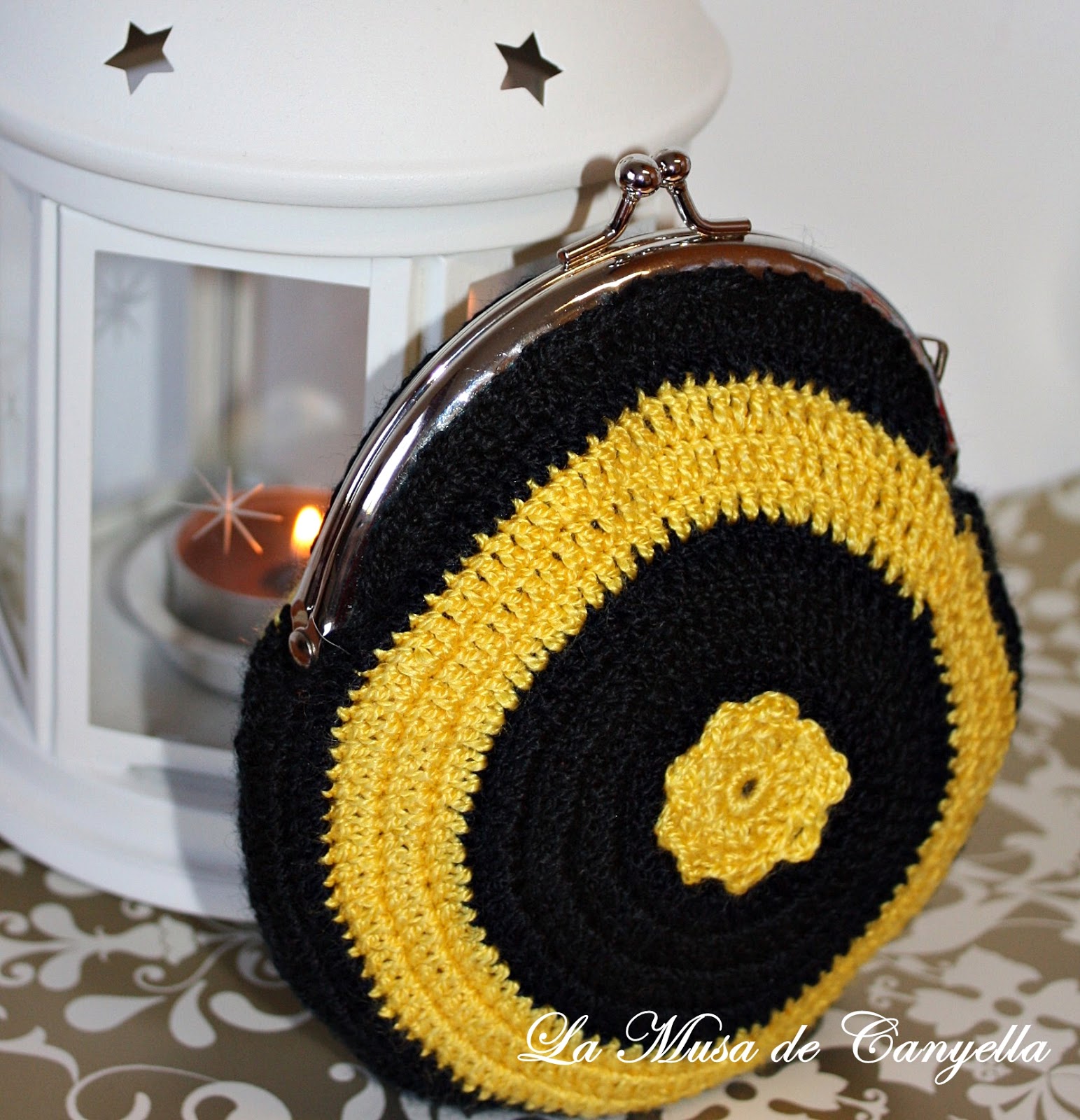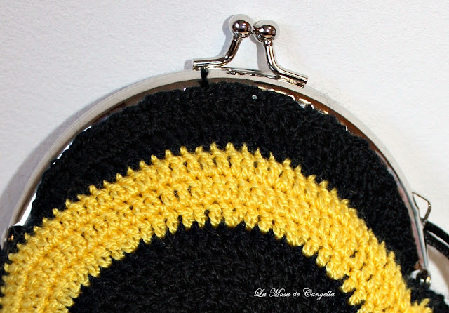 Monedero de crochet hecho a mano. Combinado en amarillo y negro.